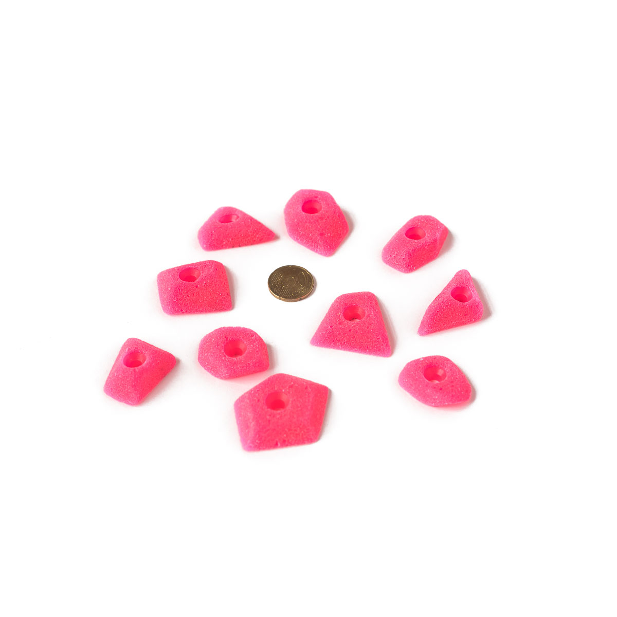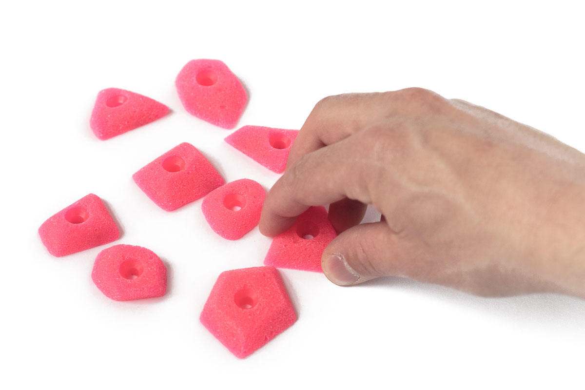 Very small one screw foot holds. Small and tricky with one good edge. Very good for developing foot technique. Absolute favourites at our home gym!